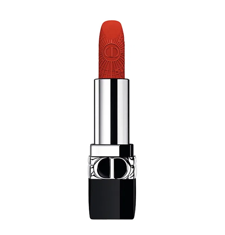 Dior以繁华星宇点缀节日妆容,推出限量版Rouge Dior。这高级定制唇膏采用持久配方,融入花香护理,并有4种色号:#Enchanted Pink、#Midnight Rose、#Mystic Plum和经典的#Rouge 999。膏体以星盘图案装饰,优雅灵动。