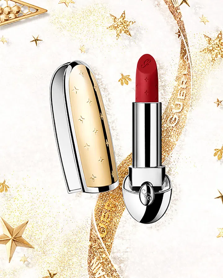 从闪烁星空吸取灵感,金色的唇膏外壳上刻印上点点星钻,光彩夺目。这款限量Rouge G唇膏系列推出两款经典缎光色号(#Pinkish Beige和#Garnet Red)和两款丝绒哑光色号(#Intense Plum和#Bright Red)可供选择。