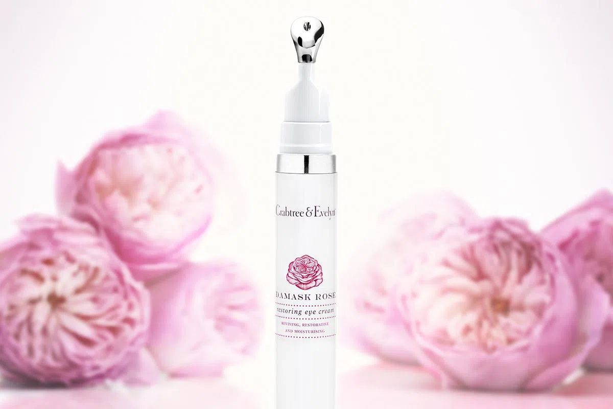 用来具有淡淡玫瑰花香的Crabtree & Evelyn Damask Rose系列,这回推出眼霜啦!选用法国的大马士革玫瑰,蜀葵、还有玻尿酸成分,可以保湿眼部肌肤,令其变得更柔嫩。特别设计的金属按摩棒,碰触肌肤更是冰凉舒爽。