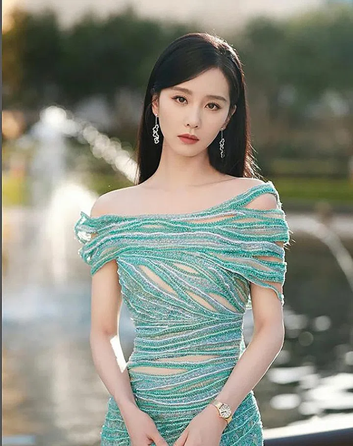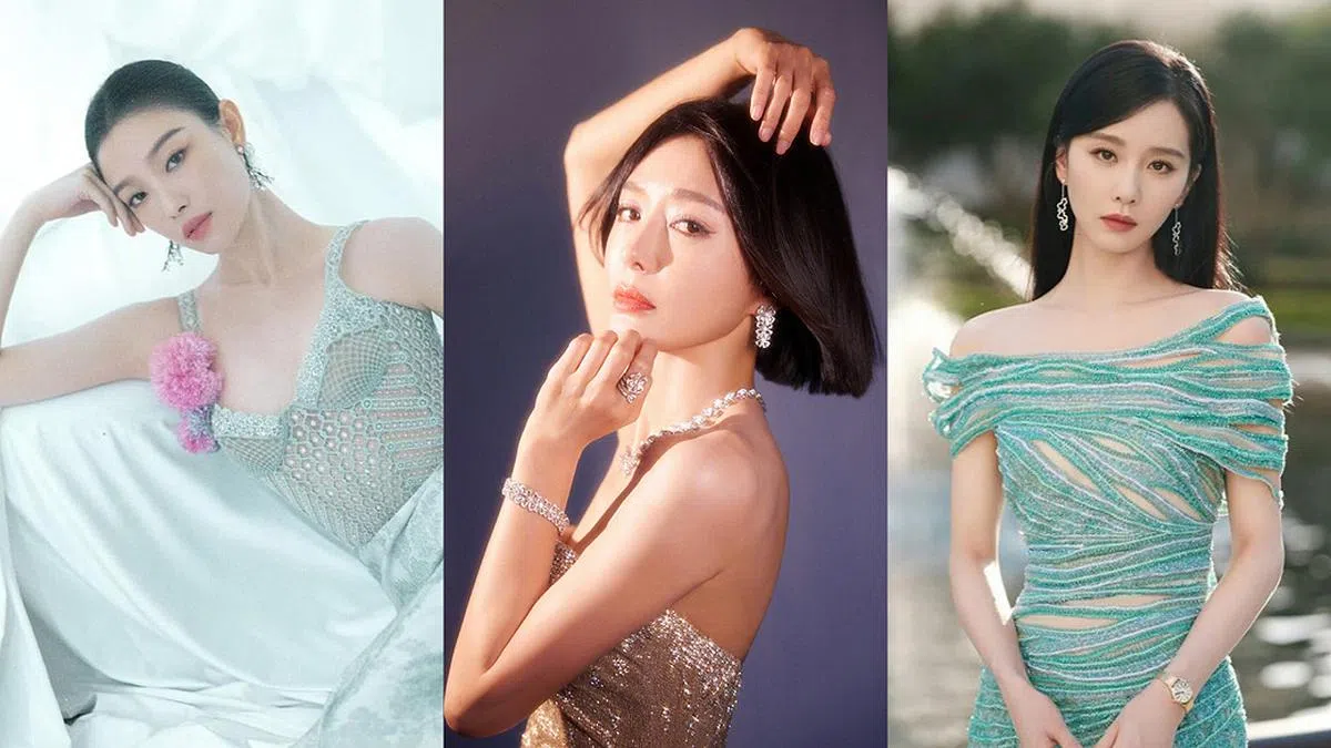 刘诗诗身穿Tony Ward 2023秋冬蓝绿色一字肩开叉长裙,一如既往的温柔又高贵。发型即蓬松又整齐,没有多余的设计则更能让珠宝更加显眼。