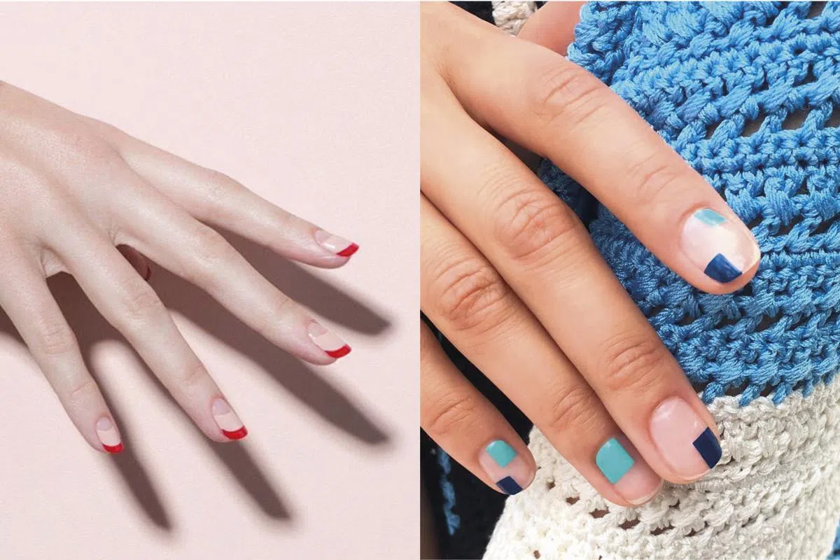 欧美非常流行的留白甲彩(Negative Space Nails),以简约的线条、波点等几何图案制造留白空间,让保留不上色的空间和图案形成对比,制造一种“未完成“的美感。