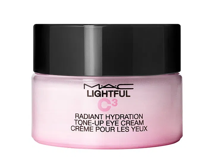 M.A.C Lightful C3系列前不久才重新上市——维他命C、樱花精粹、珊瑚草精华都是此系列的主要天然成分,最与众不同的是“粉色修色因子",可帮肌肤偏黄调的亚洲女生改正肤色。系列中的Tone Up眼霜对改善因熬夜或遗传导致的“熊猫眼”问题效果极佳,白天使用更可让双眼显得格外明亮。