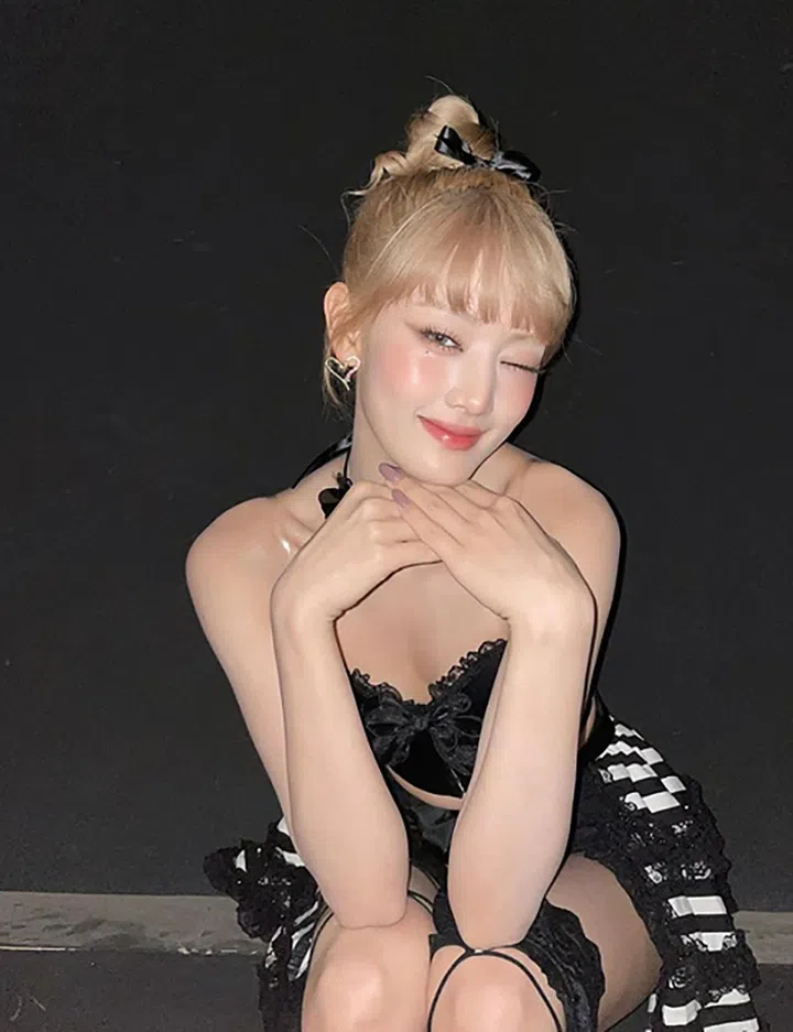经典团装腮红看上去简单,想必也是女友们最常用的腮红画法!但你知道吗?团装腮红对化妆技巧要求最高——腮红位置要恰当,边缘晕染要到位,晕染范围也很是讲究,一切要做到恰到好处才不会显老。(G)I-dle成员Minnie的团装腮红就是很好的典范,与她的丸子头搭配在一起,活泼又自然!