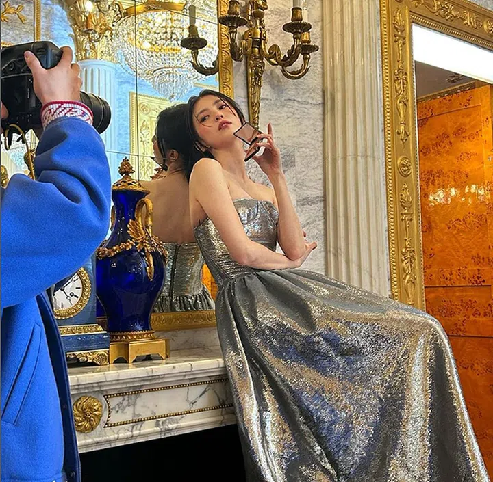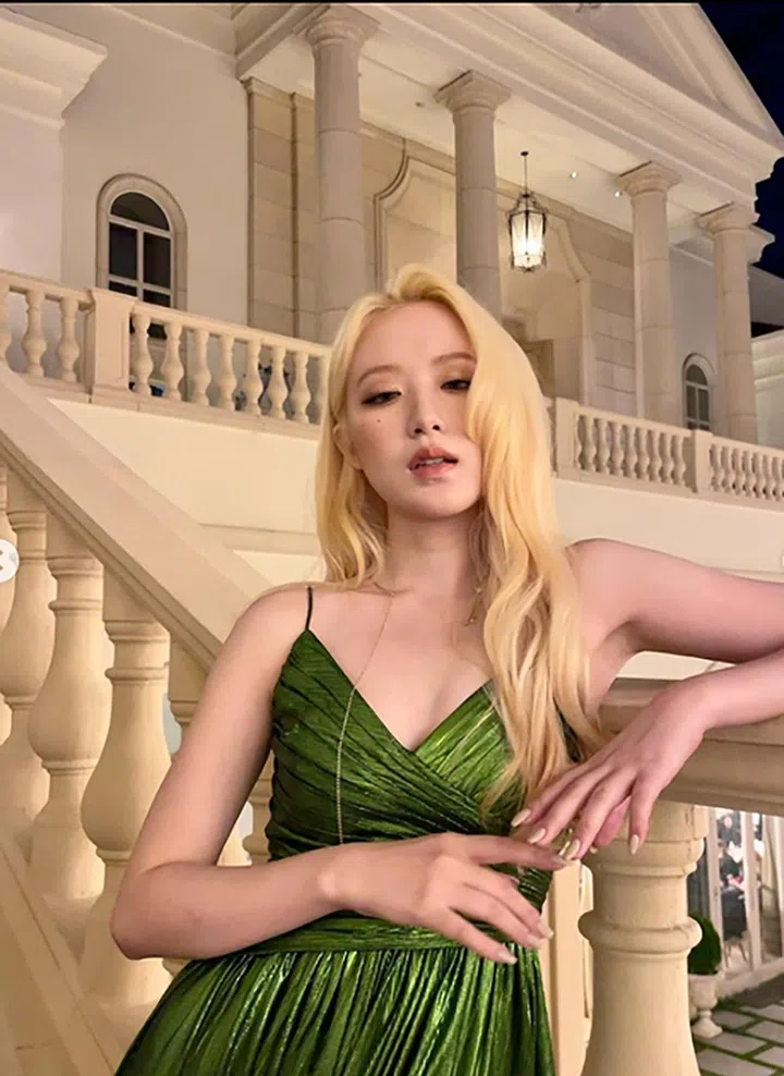 韩素希前不久为Charlotte Tilbery拍摄广告而打造了这个微醺look~她将腮红色大面积扫在眼下、颧骨和太阳穴的位置,从视觉上缩短了中庭的面积,非常适合长脸的女友们。