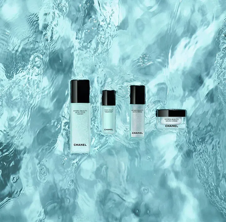 HYDRA BEAUTY系列的另一个非凡特点,是Chanel首度将尖端的微流体科技,运用于护肤领域中,创造了能完整封存活性护肤成分的山茶花精萃微滴粒子。