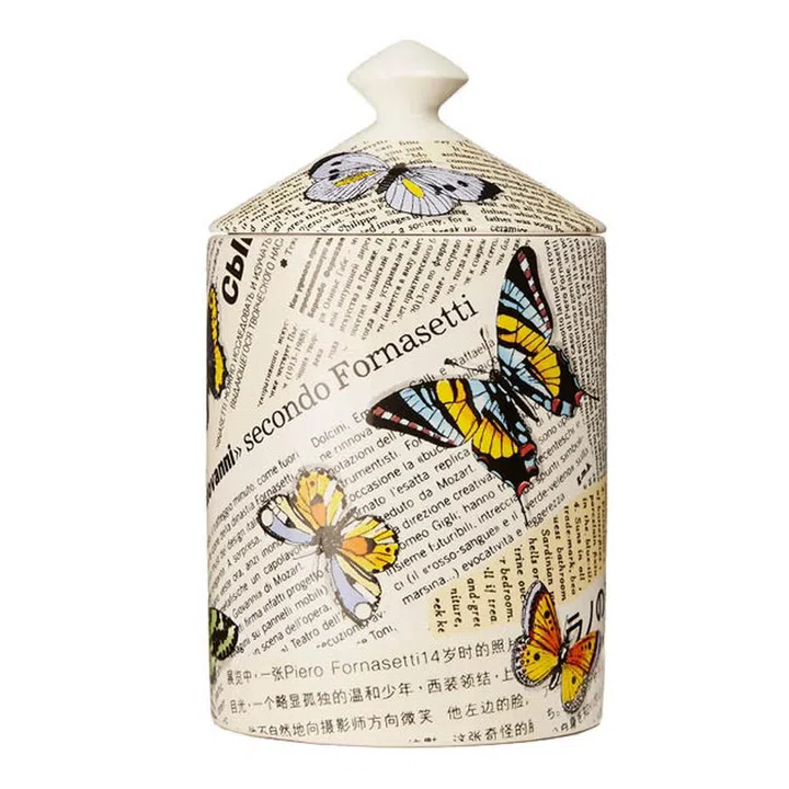 这款香薰蜡烛的中文译名为“报香杂志香氛蜡烛”,除了背景以不同的报章和杂志做设计,烛杯上的蝴蝶是创办人Piero Fornasetti1960年代极富盛名时创作的图样。橙花、丁香花、茉莉和柠檬等组成的柑橘香调,任谁都无法抗拒吧!
