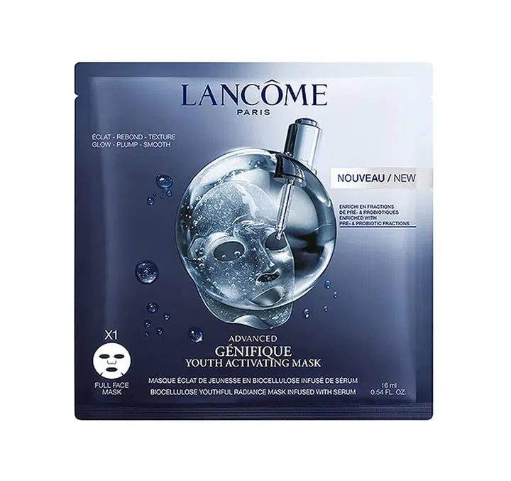 这里面可是满满的Advanced Génifique精华!特别适合特殊时期来稳定肌肤使用,膜布是Q弹的果冻质地,精华被吸收完膜布也会变成透明的,第二天上妆会很贴合哦,适合聚会前一晚使用。