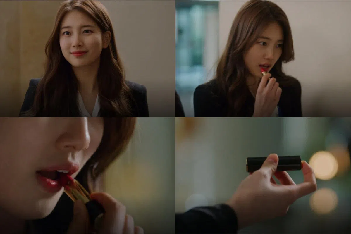 Suzy剧中饰演的国家情报院特务高海丽,在首集中就展现了“国民女神”的风范。裸玫瑰色的LANCÔME L’absolu Rouge #264 PEUT-ȆTRE唇膏,清新自然。不出所料,在剧集释出后不久据说就开始大卖了。