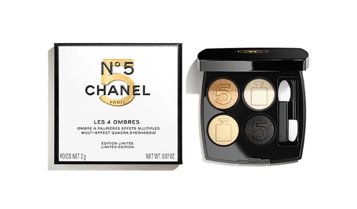 同样是为庆祝N°5的100周年,这个限量版的眼影盘以5号香水的金色色调为灵感,将金色转变为眼部和面部妆容的主色调。眼影妆感属于丝滑的缎面,琥珀色和珠光象牙白也不禁让人想起 N°5 L’EAU。四色眼影可独立使用,也可以一起使用,打造更精致的眼妆。更加分的是,每款眼影都印有N°5 的图案,收藏者必入!
