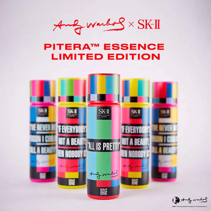 Andy Warhol被誉为20世纪艺术界最有名的人物之一,即使你不认识他,也一定见过他的画作。而SK-II神仙水,就不用小编多说了吧?爱护肤的女友们一定也了解它。其精华中含有90%以上的Pitara™是品牌独有的天然成分,由酵母菌朱发酵而成。这次的合作是因为两者对“美”的含义不约而同,并且将“安迪美学语录”中经典的三句名言分别印在瓶身上,转达满满的正能量!