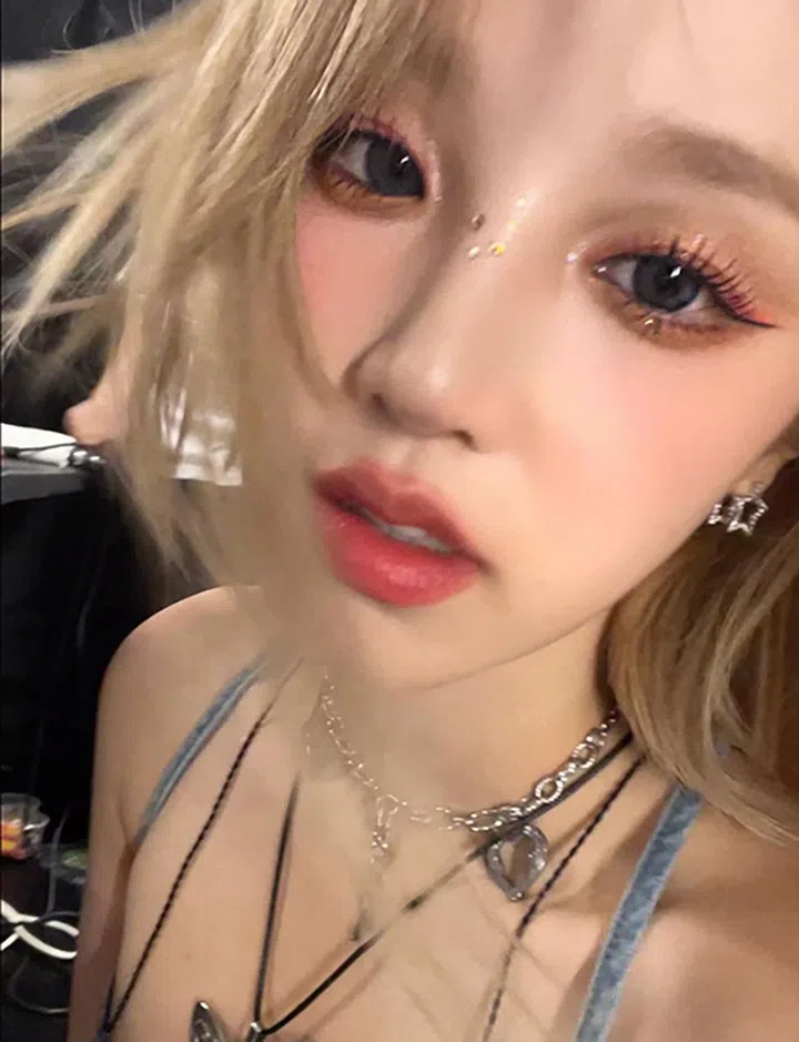 追求哑光妆效的女友们可以利用高光点带出唇妆的立体感——将高光刷在人中的唇峰的衔接处可增添上唇的饱满度,也可间接提升整体妆容的立体感和精致度。虞书欣的这张照片虽不是怼脸自拍,但依旧不难看出她上唇峰位置的高光,氛围感十足,很是亮眼。