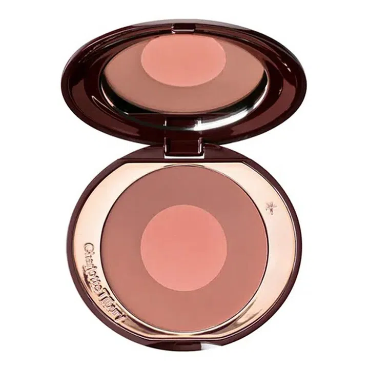Charlotte Tilbery的双色腮红能让人一眼就爱上,而且性价比很高,入手一盘瞬间获得两个腮红色。#The Climax色号内圈是带有珠光的蜜桃豆沙粉,外圈是棕调的杏橘色,混刷出来是透着粉调的裸杏色,也是恰到好处的美拉德腮红,涂着它,手里在捧着一杯热拿铁,把氛围感拉满!