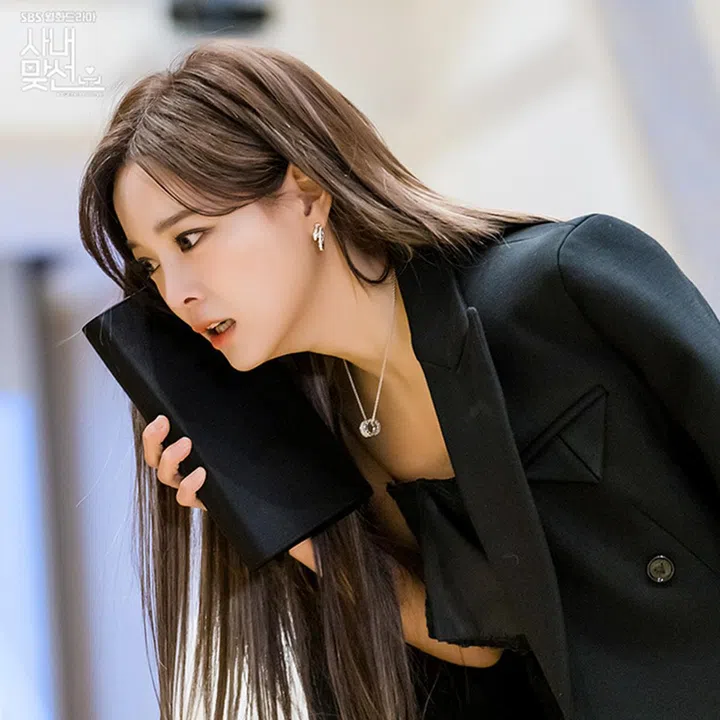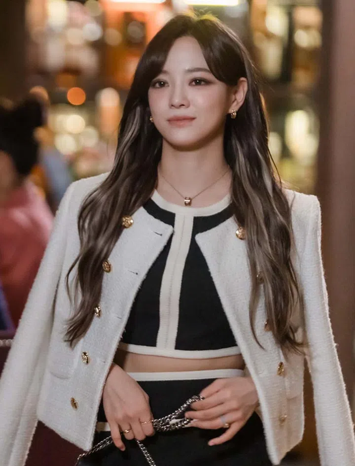 以为眼妆抢眼,申金熙的腮红就会“收敛”?No!配合浮夸的个性,强势的申金熙以眼下的大面积腮红来强调“浓妆艳抹”,因此也在首次见到男主爷爷时令老人家先“吓了一跳”。因为眼妆和腮红都非常夸张,因此申金熙千金妆的唇色,大部分为裸杏色的雾面唇膏,看上去更酷炫高冷。