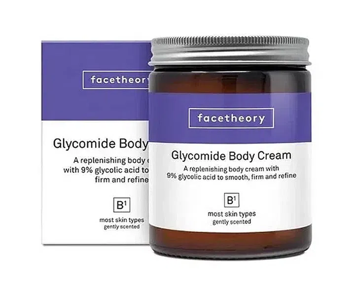 Facetheory的身体润肤霜配方结合了9%的乙醇酸、神经酰胺、糖酰胺和荷荷巴油等成分,帮助恢复肌肤活力,同时锁紧水分。