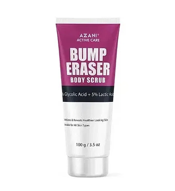 Azani的身体磨砂膏针对解决肌肤上的粉刺、粗大毛孔、干燥粗糙、毛发倒生长和肤色不均等问题。成分含有5%的乙醇酸、帮助润泽肌肤的乳酸,以及保护肌肤免受刺激的抗氧化物绿茶。