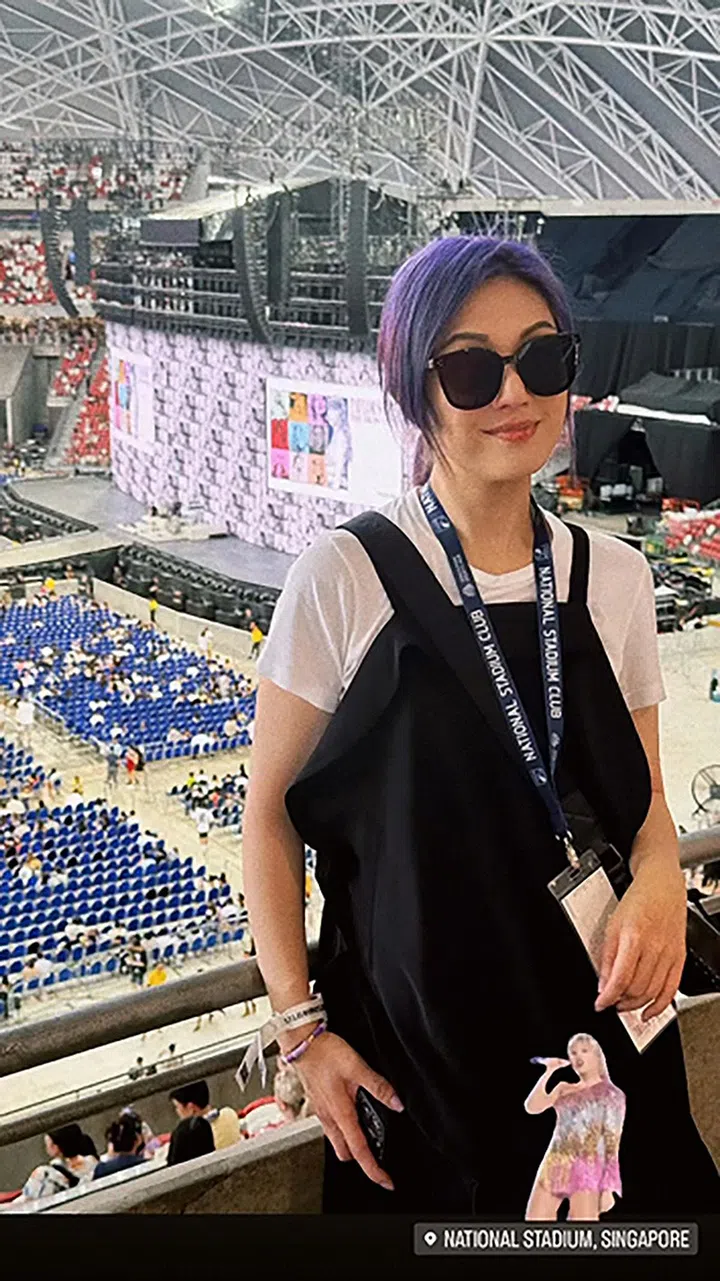 Taylor Swift在新加坡演出,当然也少不了本地的艺人swifties。你看,刚当上妈妈的林慧玲一出月子就去见Taylor Swift了。