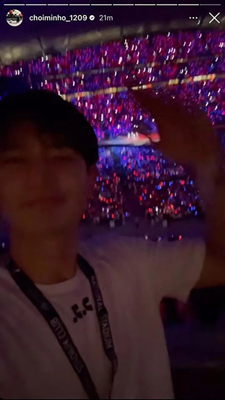韩团SHINee成员Minho(珉豪)自己开完演唱会,隔天又去了Taylor演唱会,在现场随着节奏舞动,并在IG分享现场动态。