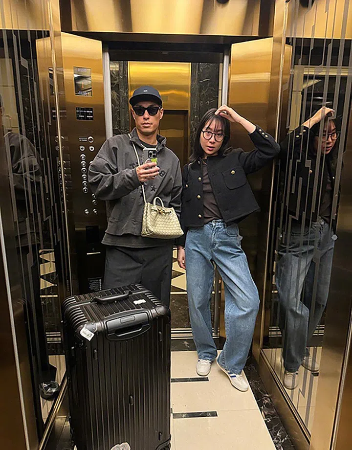 台湾男星杨佑宁也在微博分享和妻子阿梅一起去看Taylor Swift演唱会的出发造型,看得出两人的心情很快乐哦。