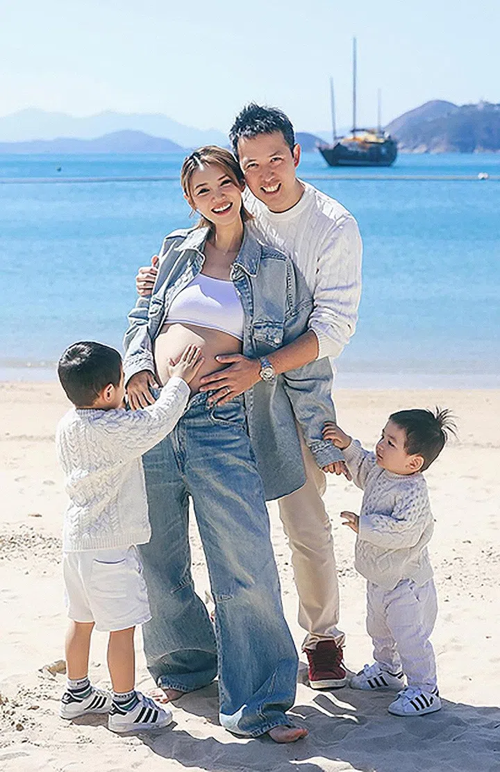36岁的香港女星倪晨曦“生产力”高,四年三抱!2020年她与金融才俊老公Vincent婚后育有两个儿子,分别3岁和1岁大,早前忽然上载一家四口在沙滩拍的全家福,照片中倪晨曦秀出孕肚,宣布家中将添新成员啦!