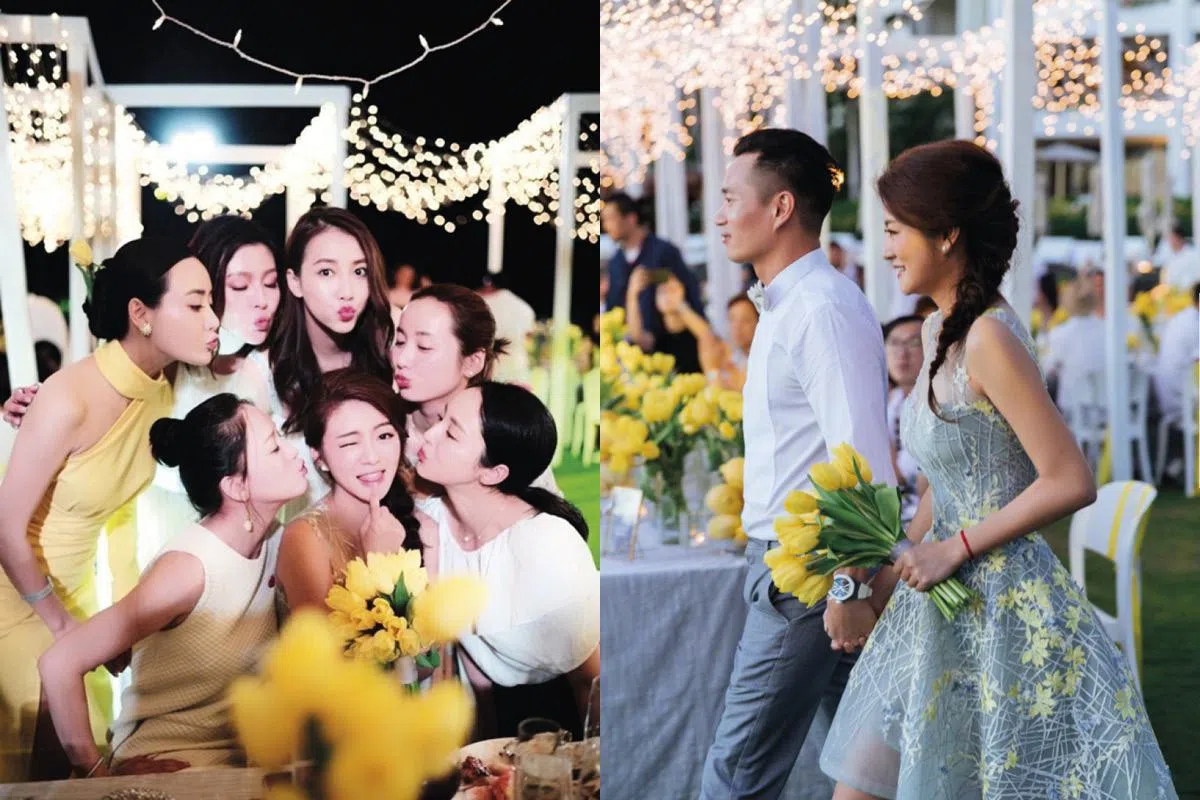 夏威夷时间6月4日,安以轩在海边度假村(Four Seasons Resort O‘ahu at Ko Olina)举行了婚礼前夕的迎宾晚宴。现场架起了白柱子,以一串串迷你灯泡缀饰,搭配郁金香的鹅黄与海风,温暖又温馨。