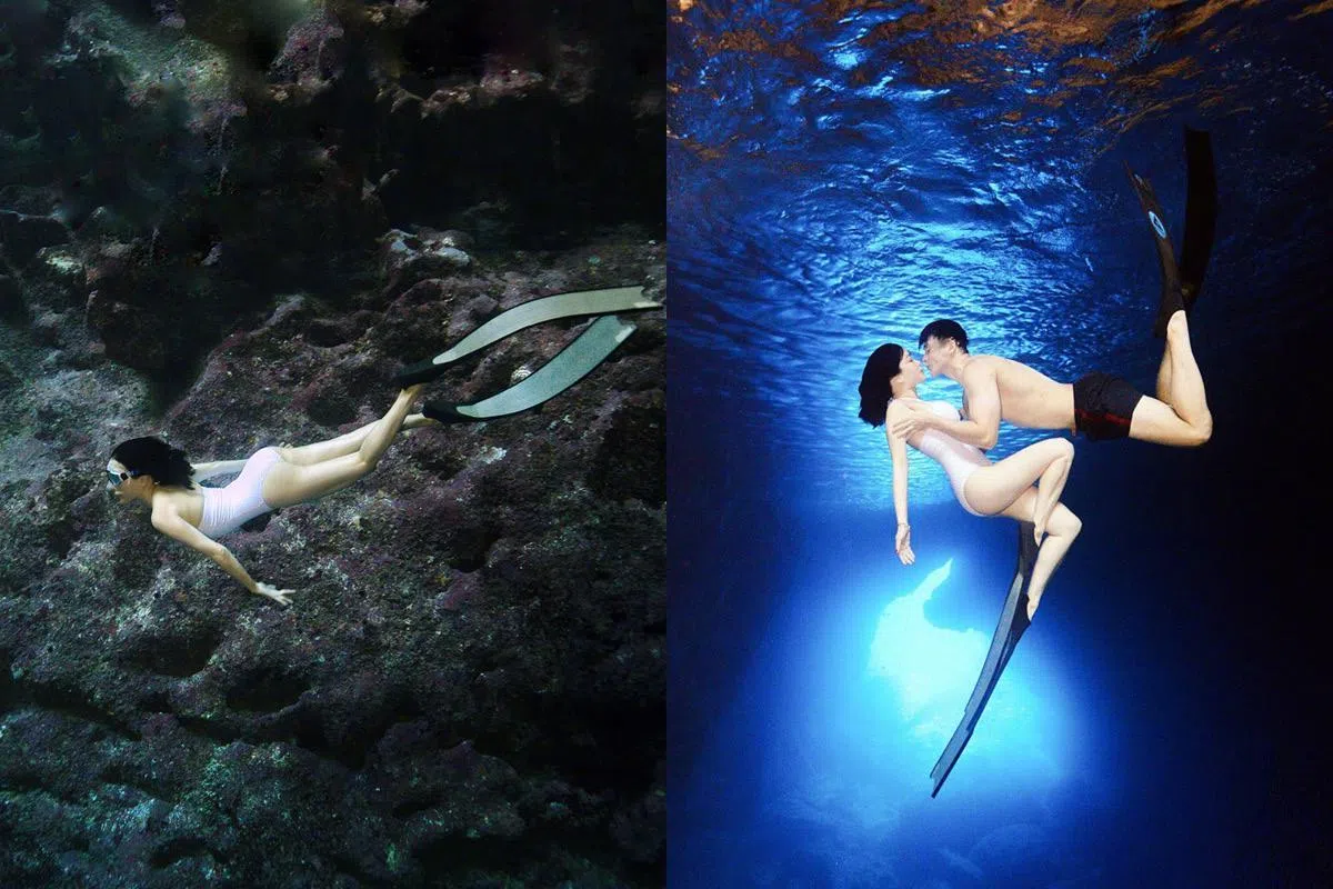 “人鱼夫妇”再次出击!继以“人鱼”为主题的婚礼请柬照之后,钟丽缇与张伦硕又发布了一组令人惊叹的海底美照!女友们不能错过哦!