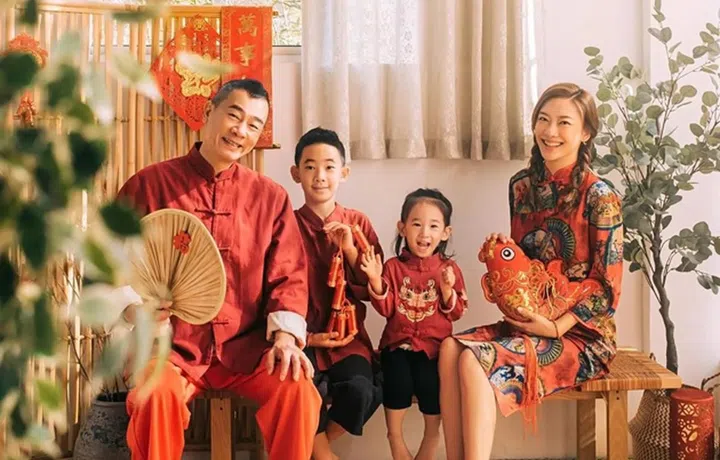 阿姐范文芳穿上喜气的红旗袍,大年初一在IG分享一家三口的全家福,向大家拜年,留言祝福:“万事皆顺意,幸福安康”,超爱舞龙舞狮的Zed Zed还套上了小舞狮亮相,年味百分百!