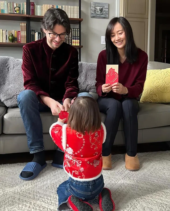 陈法拉下嫁法籍丈夫Emmanuel后,定居外国生活,但对传统过节文化依然非常重视,在IG上传了两岁的女儿“小米妮”身穿可爱唐装、跪地拱手拜年的照片,陈法拉和老公则用慈爱的眼神望着爱女,画面温馨。