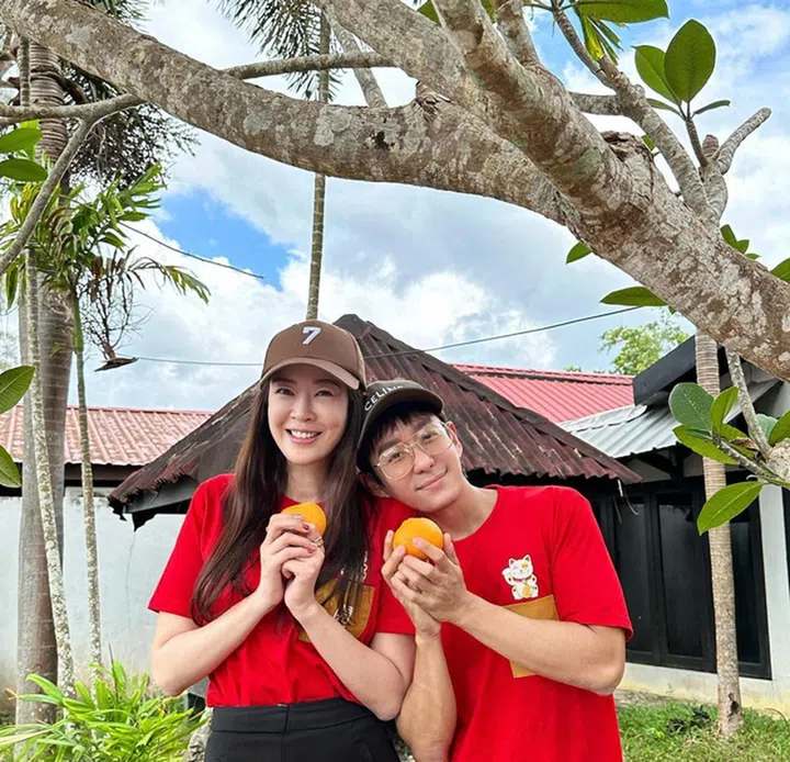 田铭耀和刘子绚2017年结婚至今,感情甜蜜恩爱,Jeremy年初二po上贺年照,还搞笑地扮小鸟依人,靠在老婆大人的香肩上,祝福大家:“平安健康,如意吉祥,快乐每一天。”
