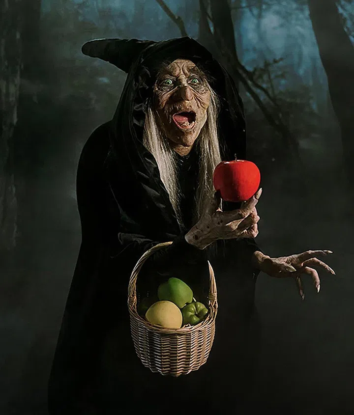 台湾博主Molly尝试特效造型,摇身变成《白雪公主》中的坏巫婆角色,完美拷贝恐怖巫婆的皱纹、大鼻子和烂牙,逼真程度让大人小孩看了都会后退三步喊怕怕,角色扮演精神认真100%。