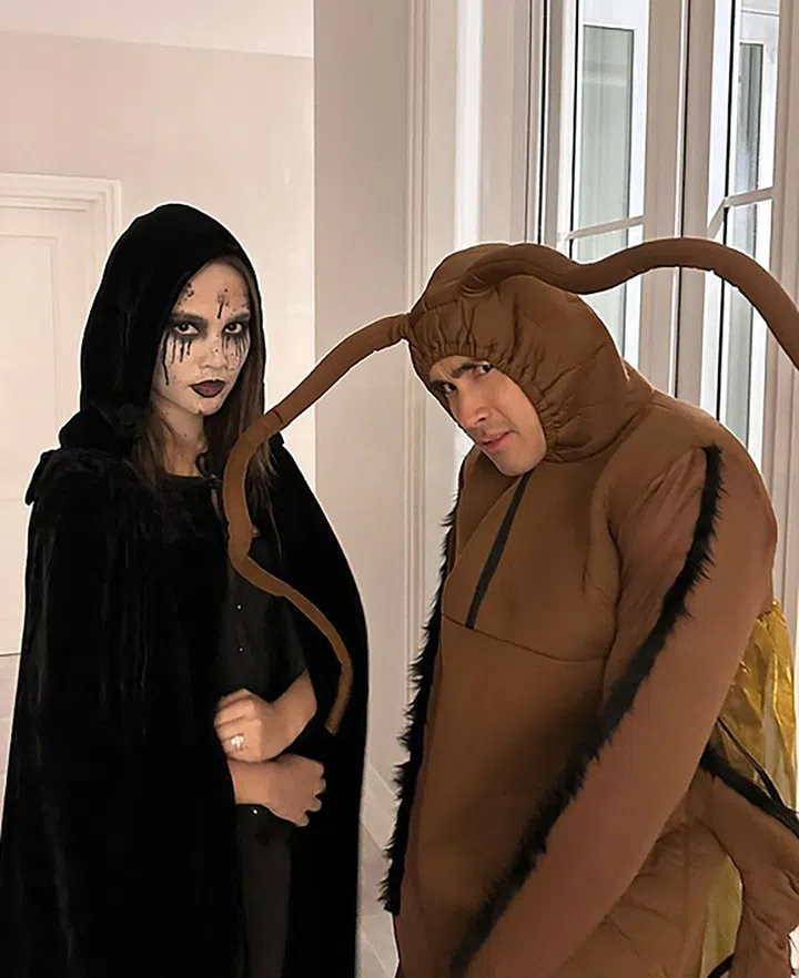 泰国高颜值国民CP Nadech(点击看《女友》封面专访)和Yaya(点击看《女友》封面专访)相恋12年,经常被媒体和CP粉催婚,今年大家终于盼到,6月Nadech在意大利向Yaya求婚,成功抱得美人归,让粉丝都兴奋撒花!两人每年万圣节都会以情侣档之姿扮演不同角色,今年Nana扮演恐怖女巫,Nadech则“牺牲色相”扮蟑螂,超级搞怪!