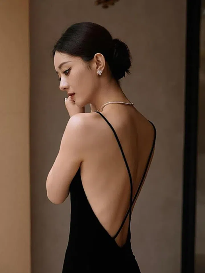 赵丽颖除了腰细,原来背也这么美!黑色的露背长裙应该是最能衬托出美背的穿搭,搭配简单的Deer高级珠宝,展现了豪门姐姐的风范——性感到让人挪不开眼,但却很高贵。