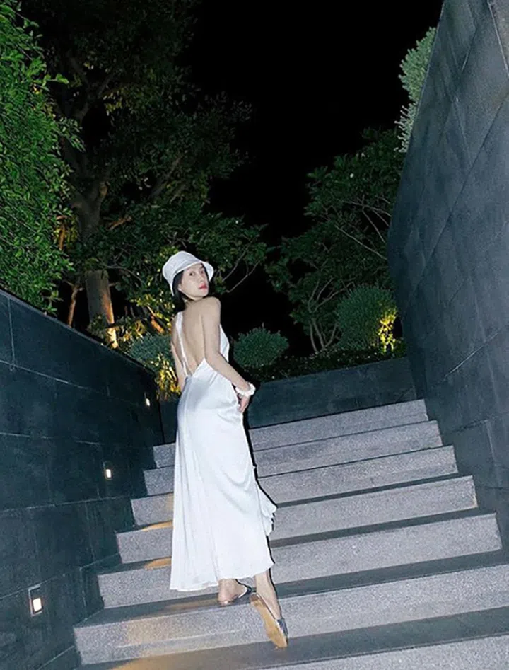 宋茜不愧是女团出身——女团腿、女团脸、女团腿,一样不少!因为时常练舞的关系,宋茜的背沟格外深邃,格外性感~ 穿着丝绸质地的白色连衣君,真的又纯又欲!