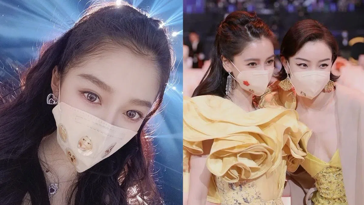 颖宝自产后复出稳重了许多,DIY口罩上也只贴了一张“2021”贴纸,与自身端庄的气质也很符合哦!