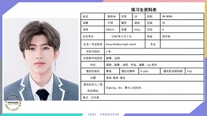 蔡徐坤在参加选秀节目“偶像练习生”的时候曾填写过练习生资料表。虽然表格“咻”一下的就过去了,但眼睛锐利的粉丝们发现他在“喜欢的艺人/团体及理由”栏中,可是填写了防弹少年团!