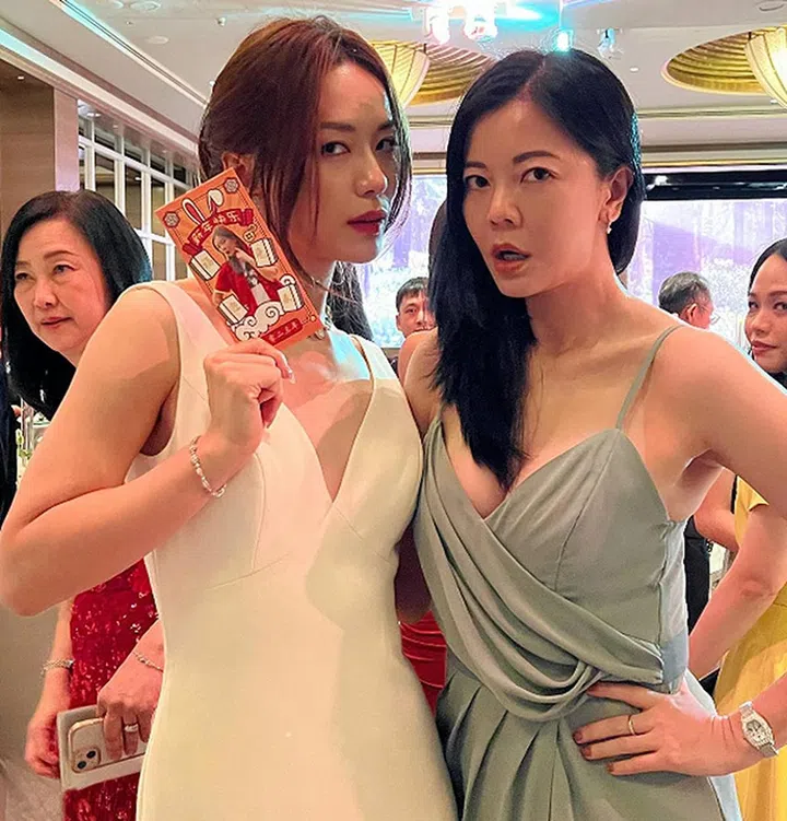 看到两人“老友鬼鬼”的可爱合照,好交情不言而喻。林慧玲“鬼马”的秀出红包封(请zoom in 看人物肖像),庄米雪则恭喜Matthew将最美最甜的美人娶回家。而搞笑归搞笑,庄米雪的低胸灰色长裙也让她显得特别lady~