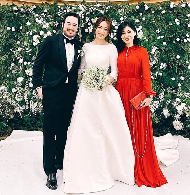 长居巴黎的欧菁仙,以一身很parisian chic的红色长裙,气色大好的出席婚礼。她也以英语和法语祝福一对新人,“Happiest Ever After Forever And Forever.Félicitations au couple parfait chers Rebecca et Matthew!”