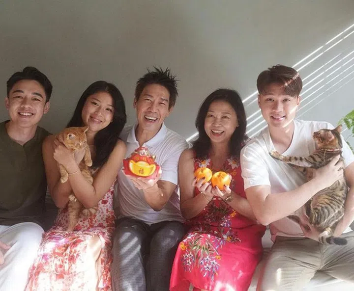 一家子都是演员,就连“准女婿”Gavin也是本地艺人,加上两只宠物猫,一家七口热闹又吸睛!