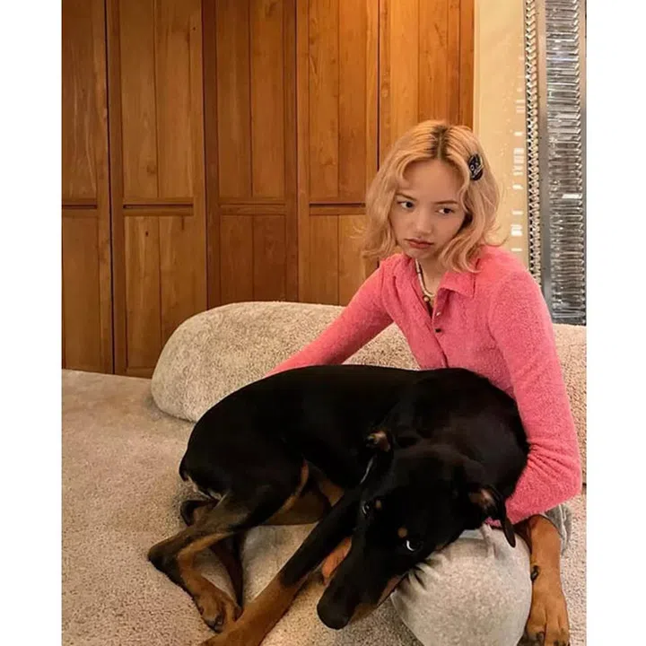 Blackpink成员Lisa是个标准猫痴,养了5只猫咪,对小宝贝们非常溺爱!去年8月她的宠物L家族迎来新成员,收养了一只名为Love的杜宾犬。她也开通了IG帐号@lalala_lfamily,分享爱犬的温馨日常和可爱萌样。她对Love宠爱有加,不时替狗狗精心打扮,连狗狗颈圈等用品都是来自她代言的CELINE。