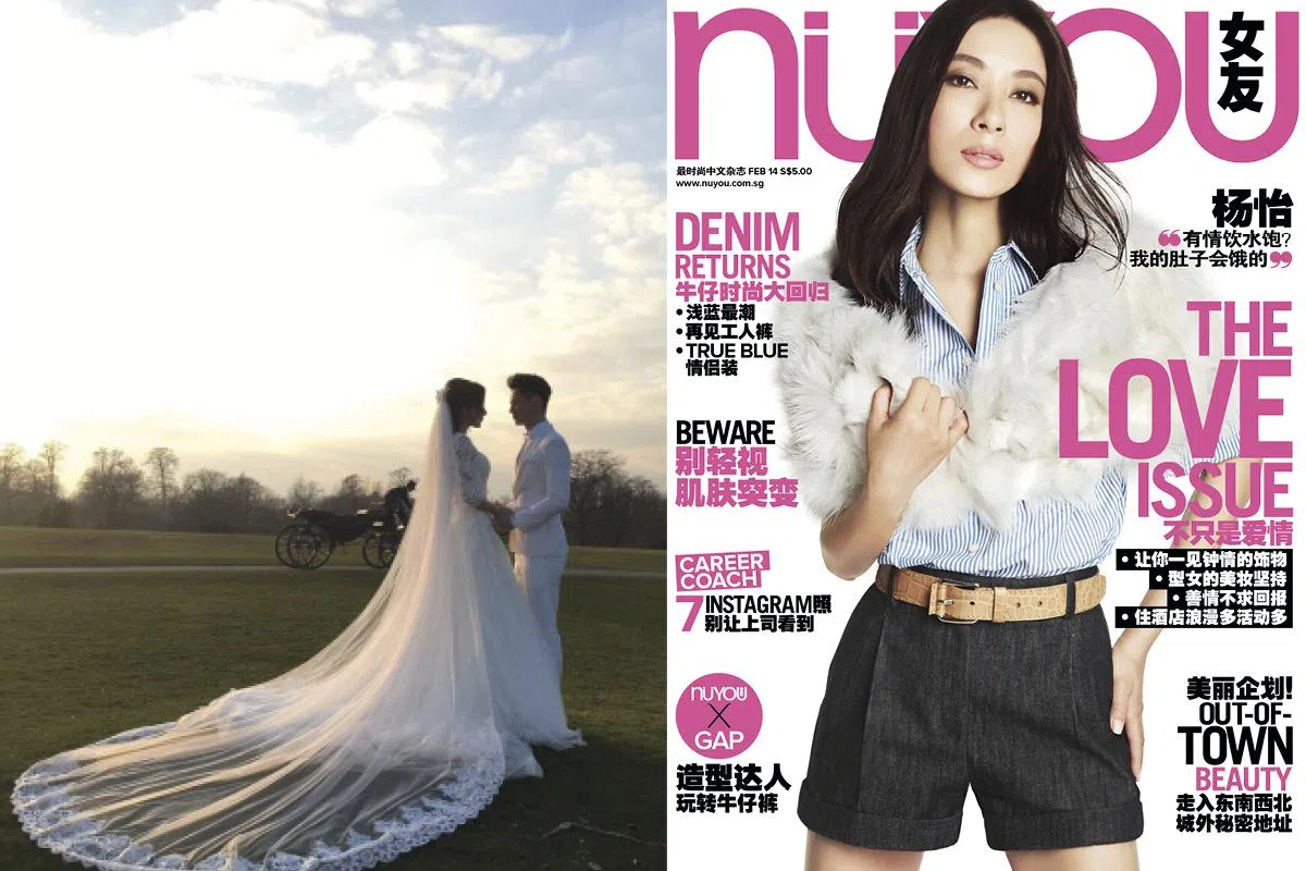 恭喜《女友》封面人物杨怡和罗仲谦正式结为夫妻。英国古堡前的婚纱照,像不像童话故事里的白马王子和公主?