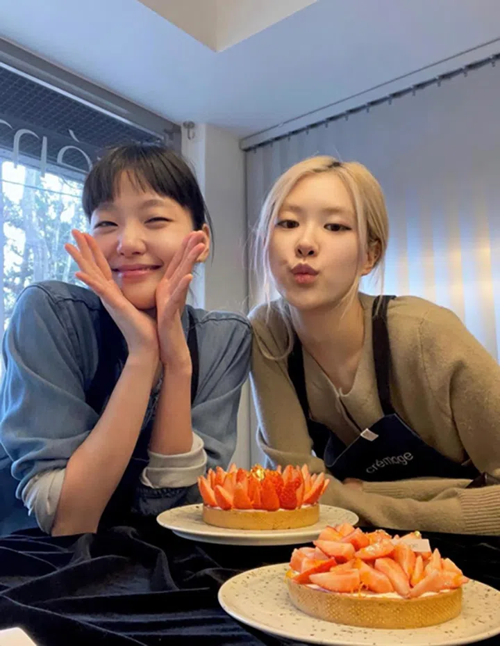 淡颜系美女演员金高银去年12月在IG晒出和人气女团BLACKPINK成员Rosé的合照,附文写道:“和彩英一起”,还加了一个爱心符号。照片中两人一起做草莓蛋糕,互相依偎在一起,让许多人大感意外,原来两人关系如此亲近!
