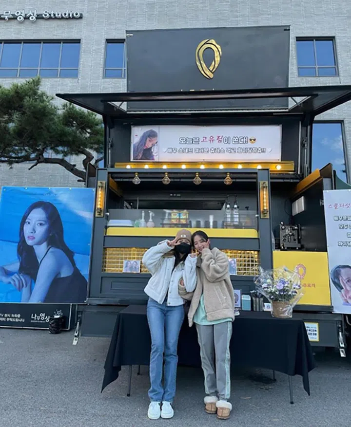 原来朴炯植早在过去几年,每逢乔妹开工拍戏,都会送餐车为她应援,这已经是第三次送餐车到片场啦!属于不同演员世代的两人,虽然不曾合作,但过去同属一个经纪公司,曾是同门师姐弟关系,因此结下深厚的友情。