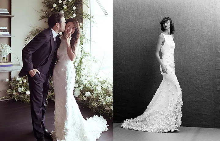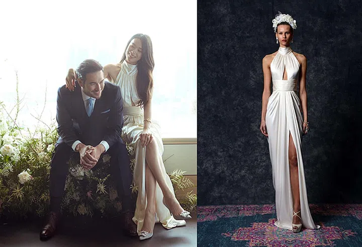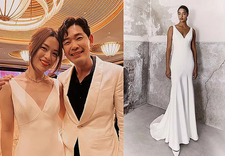林慧玲新po出的IG照片中,这身来自Naeem Khan 2020春季系列婚纱礼服也很有看点。高雅的挂脖和开叉设计,展现出她漂亮的肩骨和美腿,胸口的cut-out设计性感又不暴露。