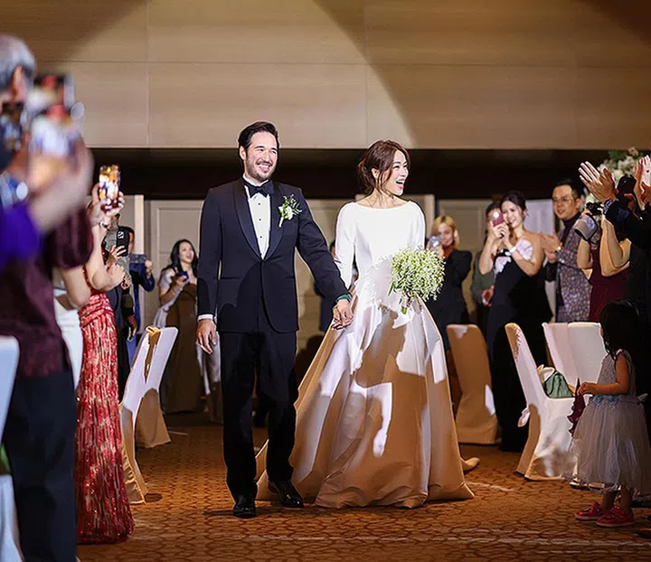 林慧玲与圈外老公Matthew Webster于11月27日在本地The Ritz-Calton酒店举办婚礼,她都穿了什么?一起来看!
