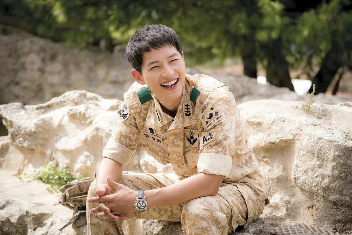 宋仲基在《太阳的后裔》中集阳光与呆萌于一身,成功爆红