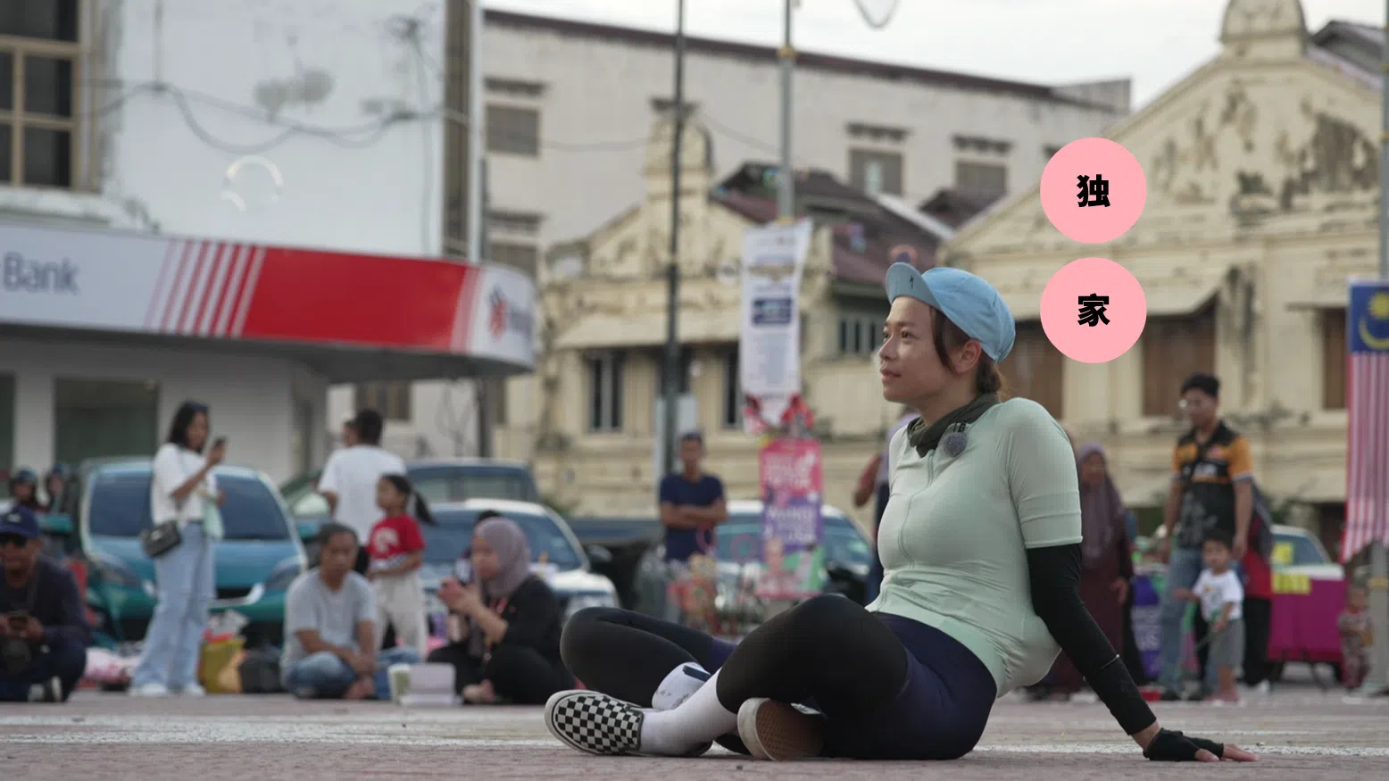 陈凤玲说,累了就休息,沿途她会自己找乐子,是不是补充“热量”又或是与路人聊天,在旅程中有苦有乐!(图:Mediacorp提供)