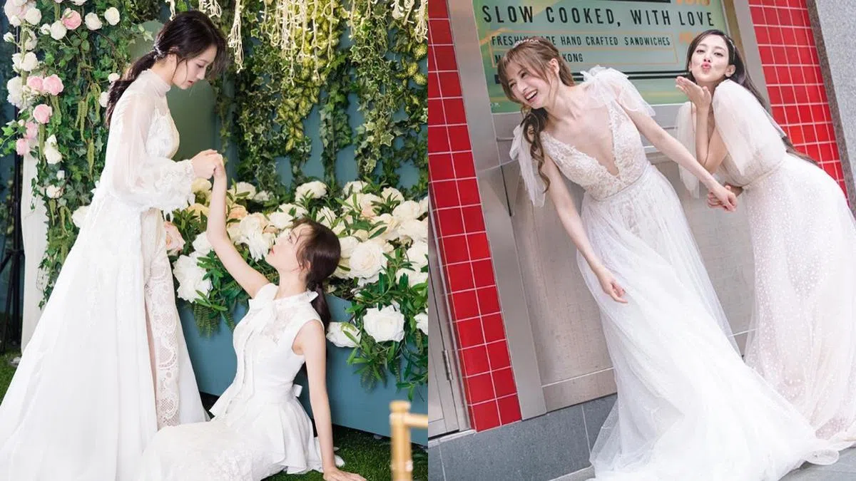 婚礼也能用来纪念闺蜜情谊!SHN48后辈姐妹团GNZ48的两位实力成员刘力菲及谢蕾蕾,在成团时就获得前两名的高分,后来更站上了总决选专属MV《秘密花园》C位,还分别在影视方面都有突破性的表现,相仿的经历使得关系更亲密。