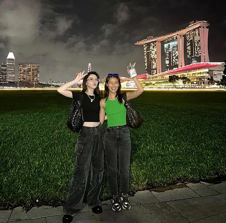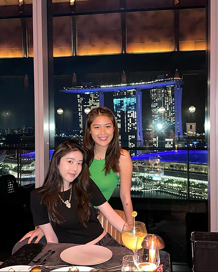 谁说烛光晚餐只能和男友一起吃?姐妹淘相聚就是要一起吃吃喝喝,聊八卦吐吐槽,不亦乐乎!李凯馨年初回国后不久,就和陈一心相约见面,到高档餐厅享用精致美食,边饱览滨海湾五光十色的迷人夜景。李凯馨在IG分享照片,两人还拍了不少游客打卡照,陈一心留言:“和你一起扮游客真的太好玩!期待下一次再聚。”