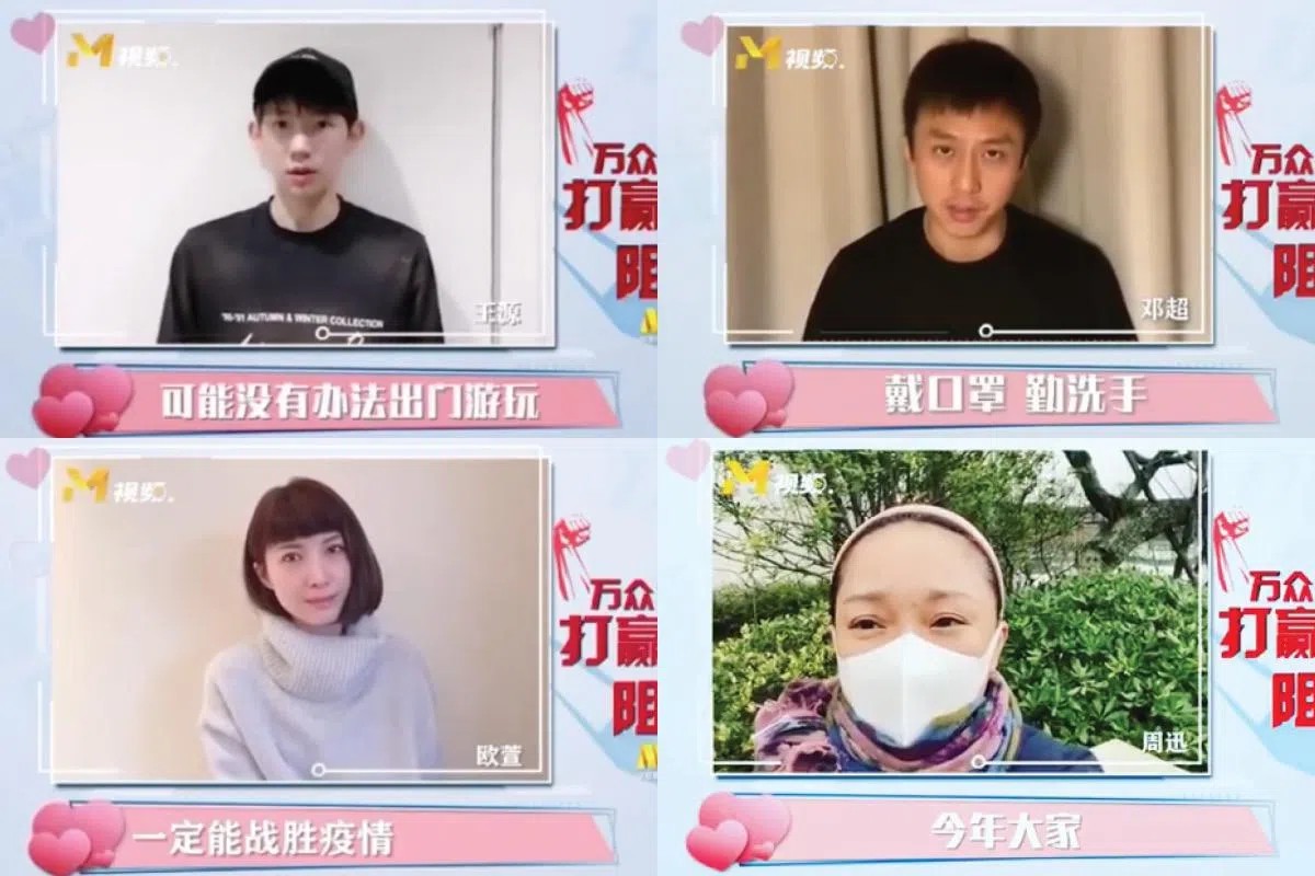 看众明星(包括本地的欧萱!)自行录制短视频,呼吁民众响应防疫活动,且为武汉加油打气。 #万众一心打赢疫情防控阻击战