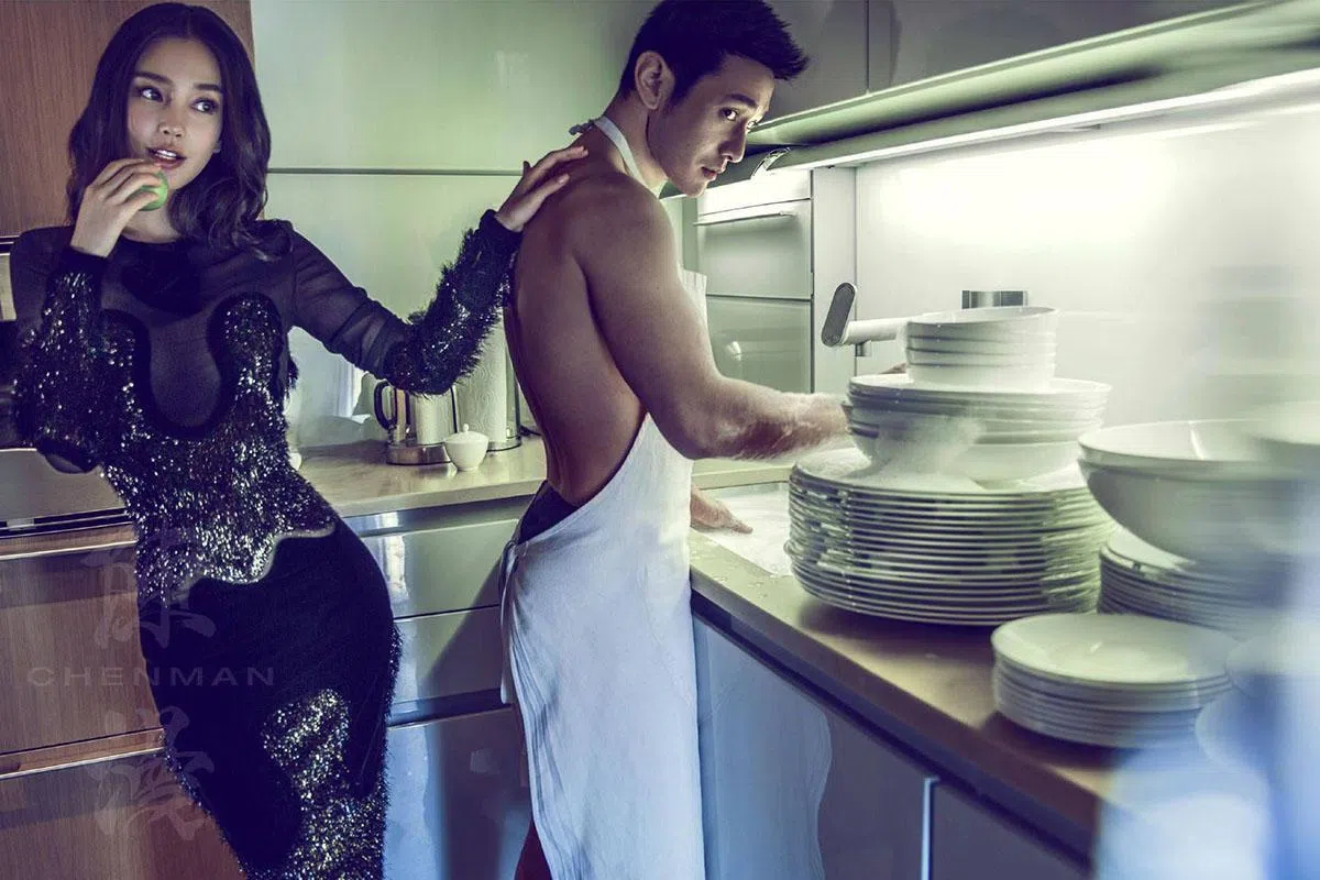 在Angelababy产后发布的一系列性感夫妻照,让网友直呼“受不了了”啊!野外中穿着正式的两人,肆意在阳光底下紧贴着对方,转眼又有卧室“床照”,接下来是黄晓明在厨房尽穿着围裙—— 才发现,在这个流行“居家好男人”的年代,仅穿围裙的性感风,不再是女性的专利哦!