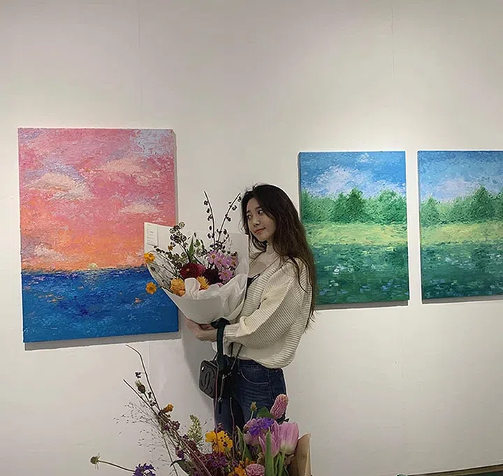 女团Girl’s Day的成员Yura过去毕业蔚山艺术高等学校,有“蔚山美人”之称。除了有高颜值,画画天赋也让人赞赏,她曾办过个人画展,至今也经常在IG分油画作品,笔触柔和细腻,特别钟爱大自然主题,如天空、海洋和植物,风格疗愈清新,净化眼球。